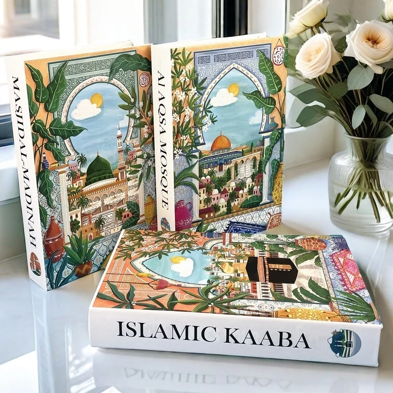 Muslim Mosque Kaaba Luxury Fake Book Storage Box Islamic Decorative Books Home Decor Coffee Table Bedroom Interior Decoration