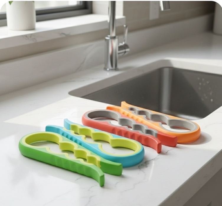 Struggling with stubborn jar lids, bottle caps, and can tabs? Our 4-in-1 jar opener is the perfect solution for effortless opening every time!